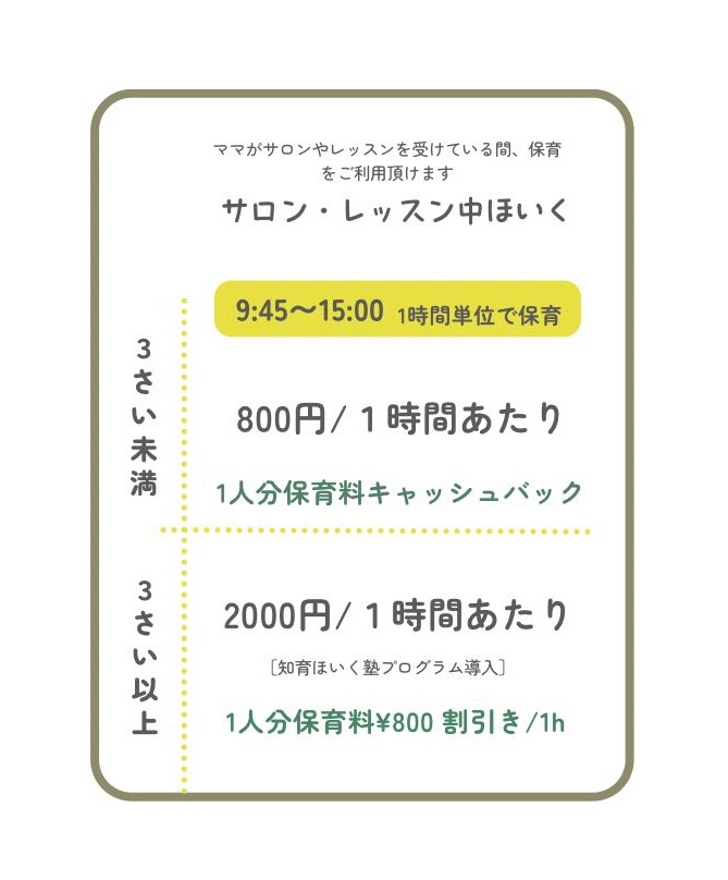 (3歳未満は無料、3歳以上は1時間¥800引き)