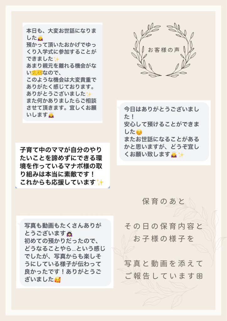 保育をご利用頂いたご感想