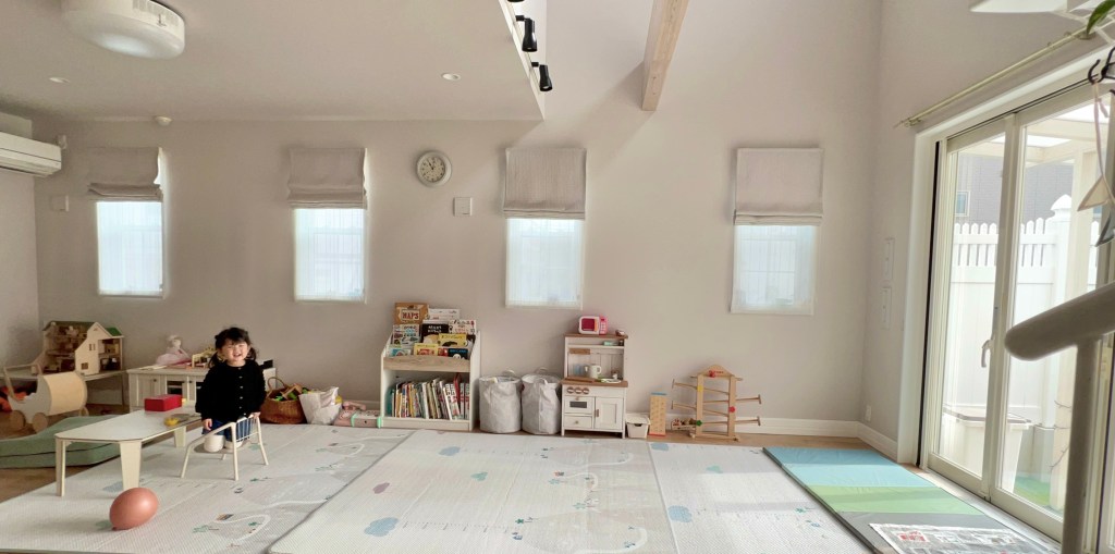 およそ30畳の広いお部屋で思い切り遊べるお部屋です。お庭遊びもできます。