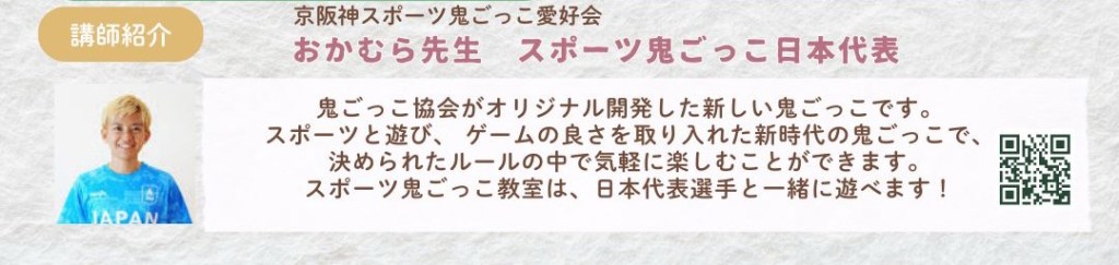 スポーツ鬼ごっこ教室 鬼ごっこイベントはこちら 1/24 (土) 13:00〜15:00予約 足が速くなるスポーツ教室は体験予約はこちら 2/2(月)16:00/17:00 2/16 (月)16:00/17:00 •体験会について/ご質問はこちらから お問い合わせ TOPへもどる いいね 読み込み中… いいね 読み込み中…
