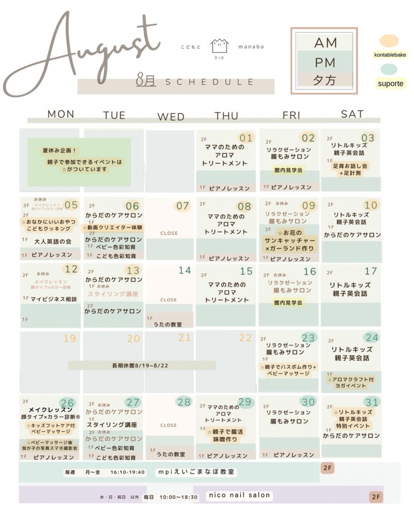 8/10(土) ・8/31(土)もサロンオープンしています🚩