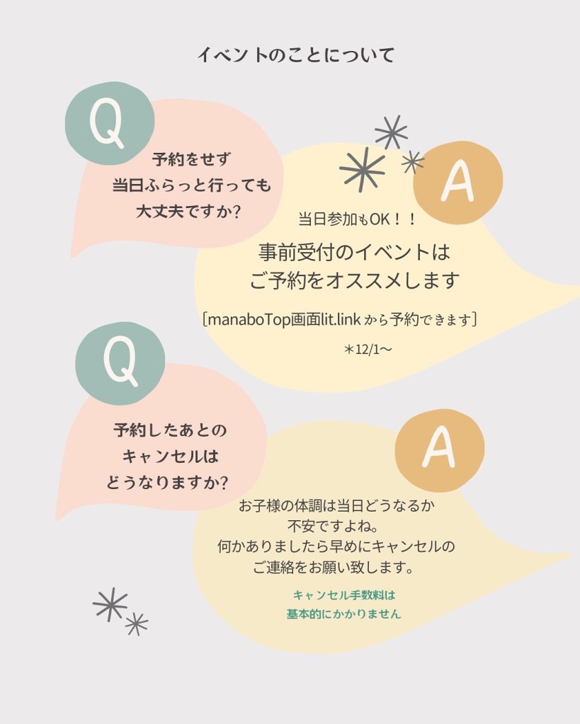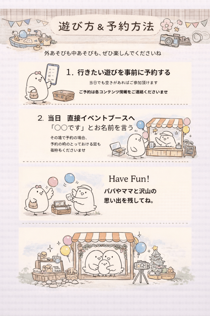 ・最初の1時間は小さなお子様優先枠とさせていただきます。