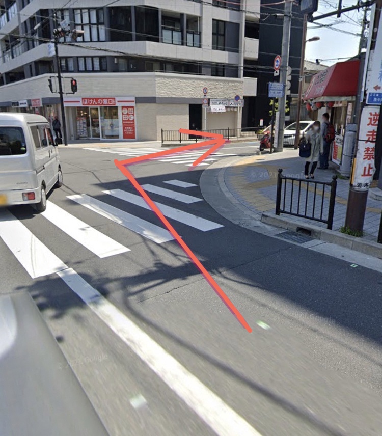 横断歩道を渡りこちらの路地へ入ります