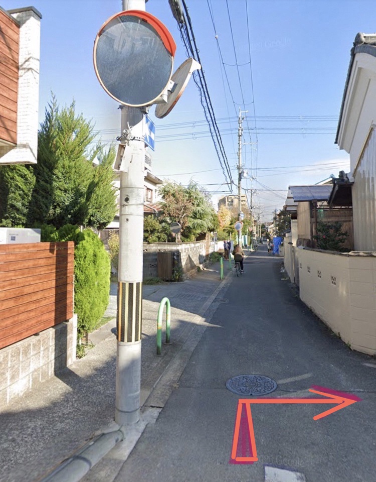 こちらの交差点を右へ曲がります。