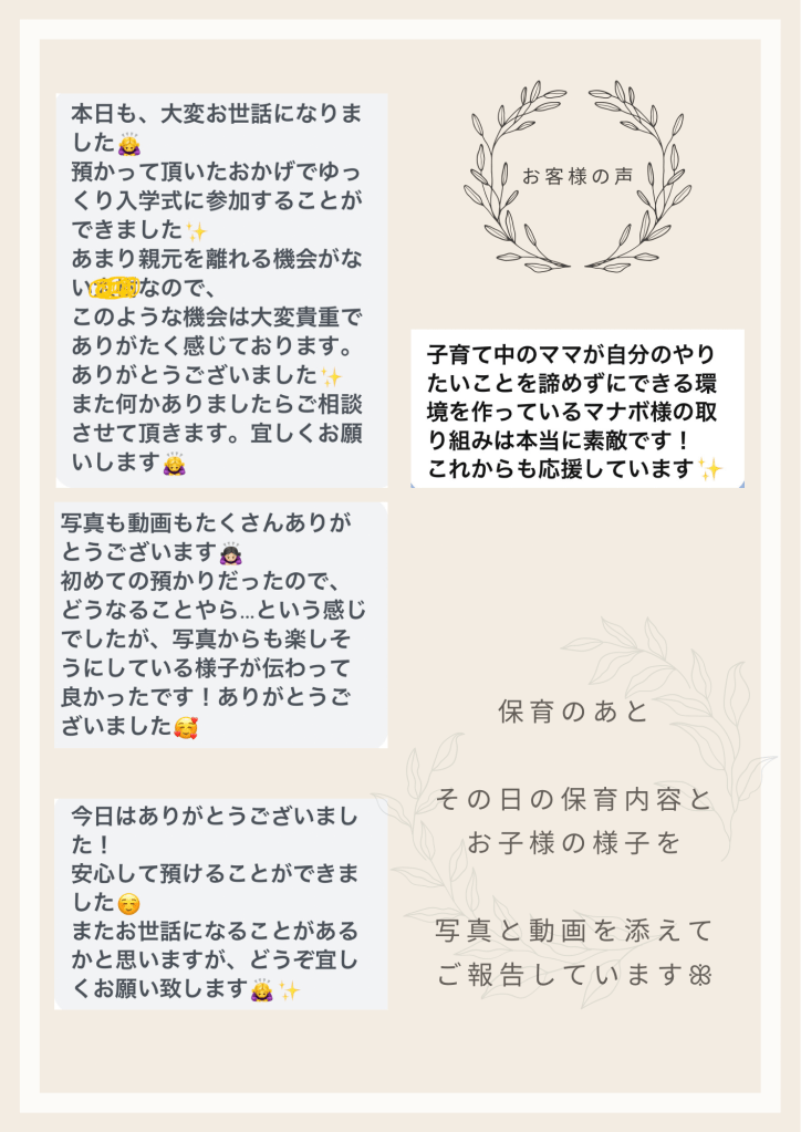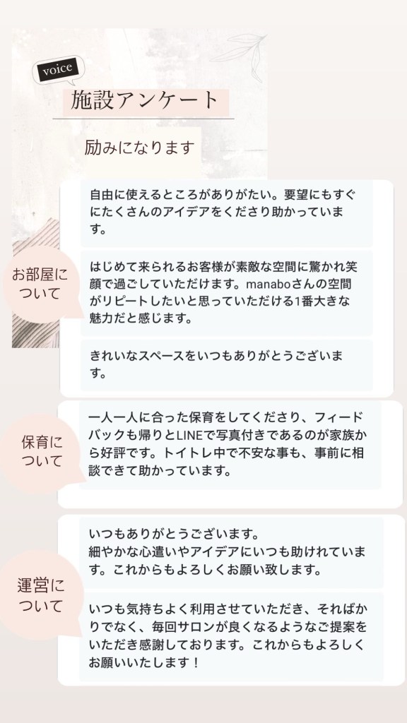 manaboとほいく利用者様より